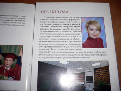 Руководство Университета и Академии активно помогают в создании музея и присуждение победы Кафедре маркетинга и рекламы в лице заведующей кафедрой Лилианы Рафиковны Петровой – яркое тому свидетельство