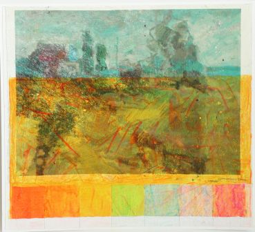 Подтверждением того служит квадрат – символ земли и устойчивости – присутствующий во многих композициях. Иногда это легкий бумажный квадратик из тибетской бумаги ручного литья, размещенный в цветовом поле авторского изготовления. «При полном отсутствии реального изображения это сочетание создает мерцающую вибрацию чистого цвета и отсылает нас к состоянию полного душевного спокойствия и гармонии», - свидетельствует художник. Нам думается, что эти слова полнее всего раскрывают нам смысл его исканий и лучше всего представляют концепцию выставки «Земля и краска». Войдем же в нее…